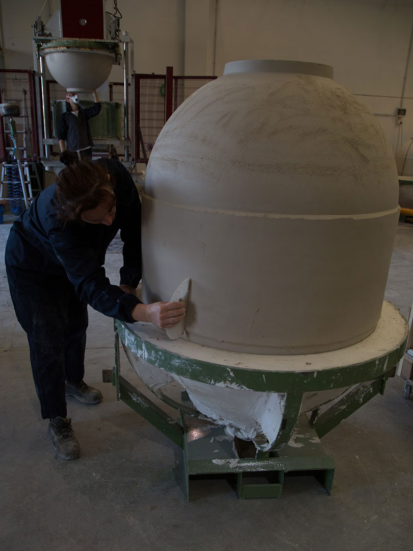 Dieses originale Nomblot Produkt wird in einem Betonguss, ohne Zugabe von Eisen hergestellt. Es werden drei verschiedene Sorten von Sand, Zement und Quellwasser verwendet. Komplett natürlich - Beton atmet - Ihr Wein reift ohne Fremdgeschmack heran.