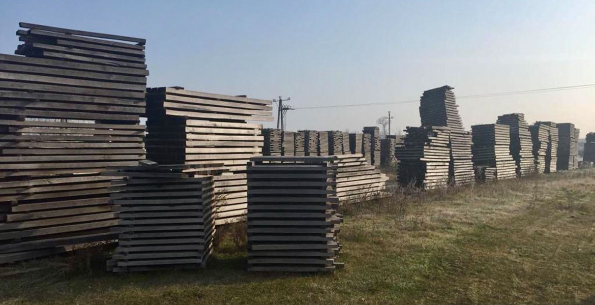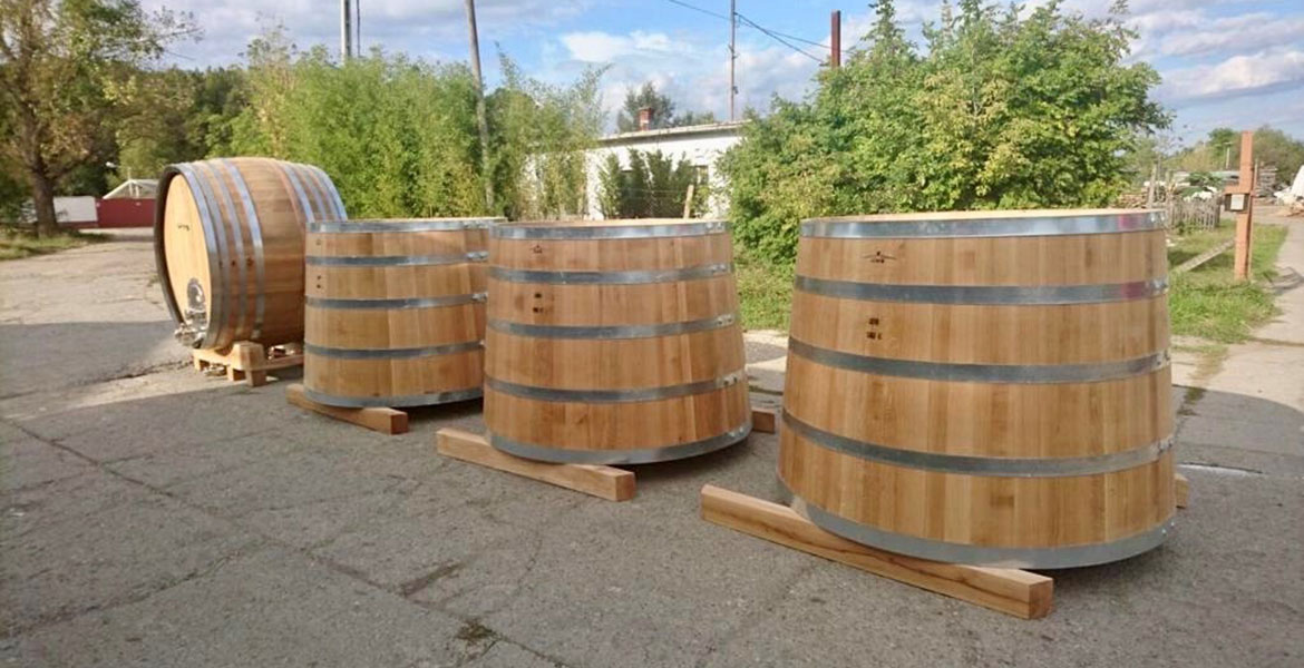 Unsere hochqualitativen Großfässer werden im Werk KALLA in Ungarn gefertigt. Die Eichenstämme, die dafür verwendet werden, kommen aus den Tokaij-Wäldern, im Werk werden sie zu Pfosten geschnitten. Die Lagerzeit des Holzes ist 4-5 Jahre